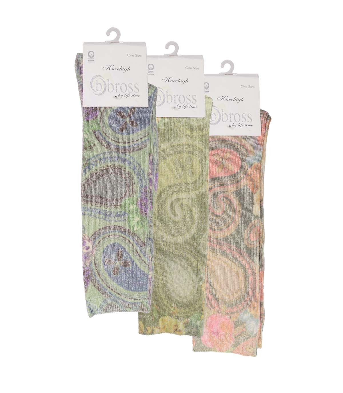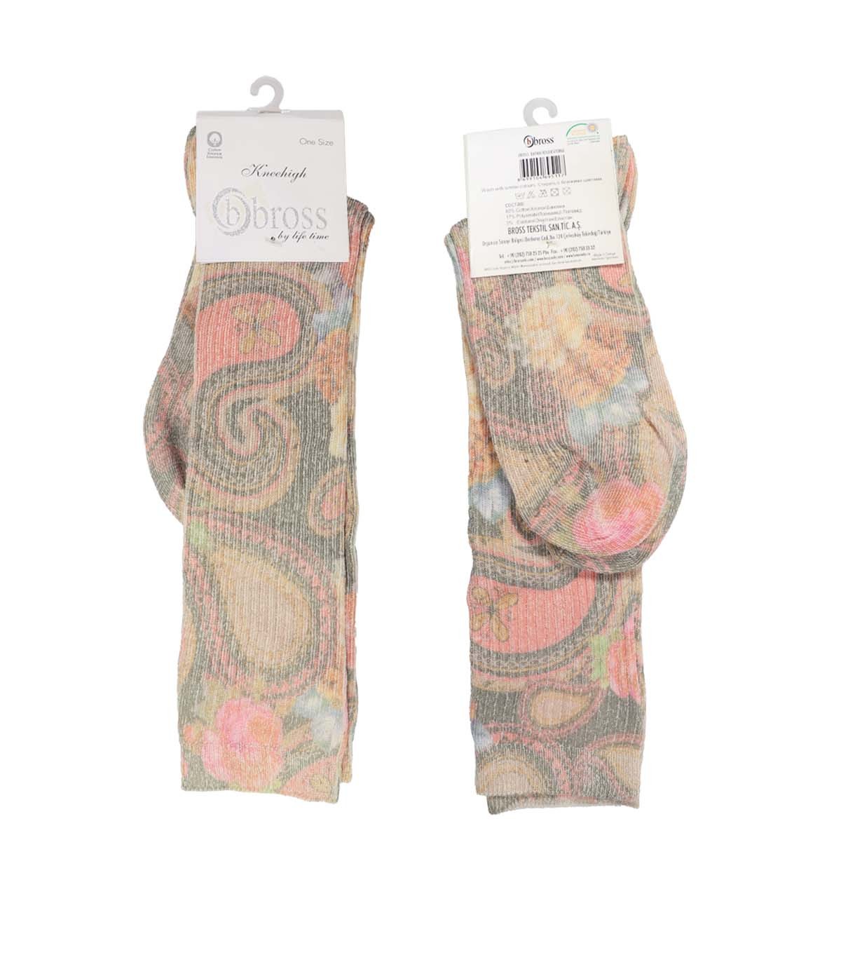 جوراب چاپی نخی زنانه زیر زانو ساق بلند بروس 4109 | bross